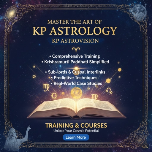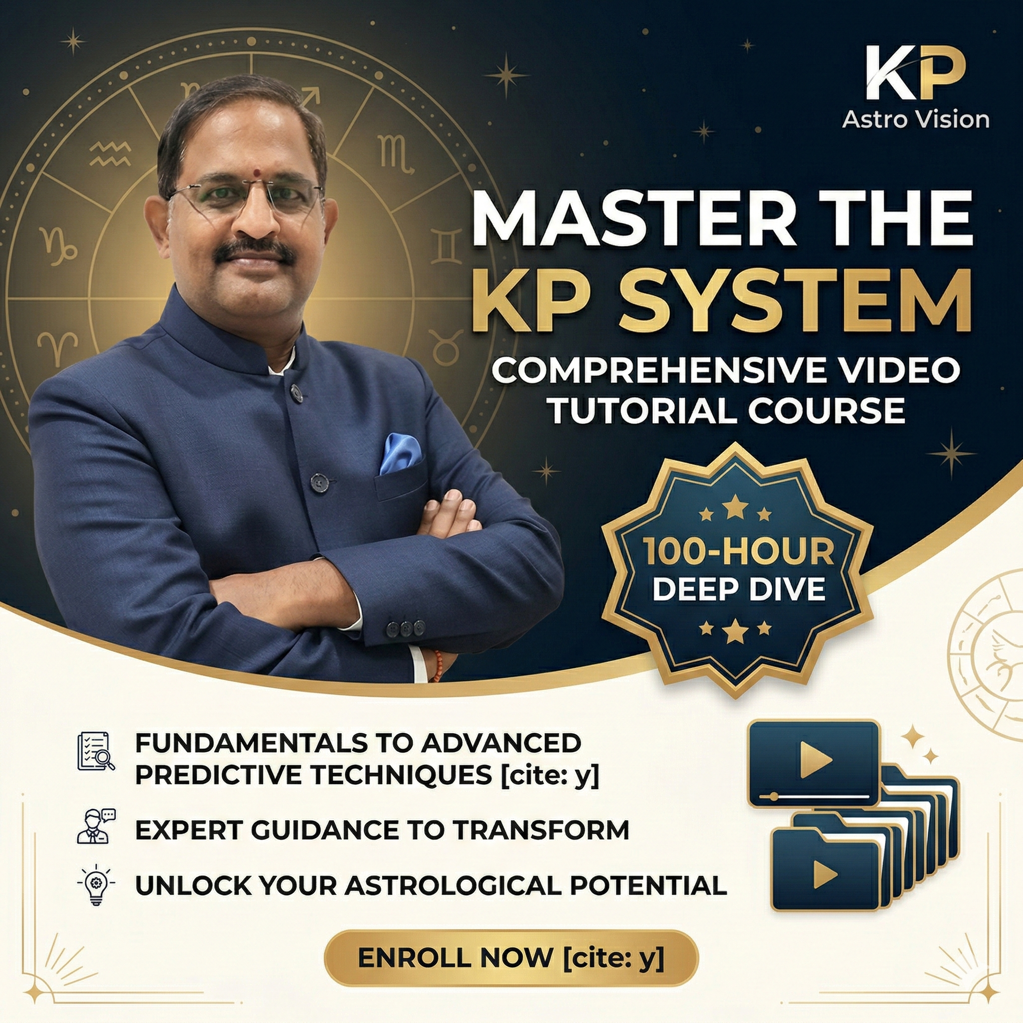 Master the KP system with KP Astro Vision’s comprehensive 100-hour Video Tutorial. This deep-dive course covers everything from fundamentals to advanced predictive techniques, providing expert guidance to transform your astrological practice.