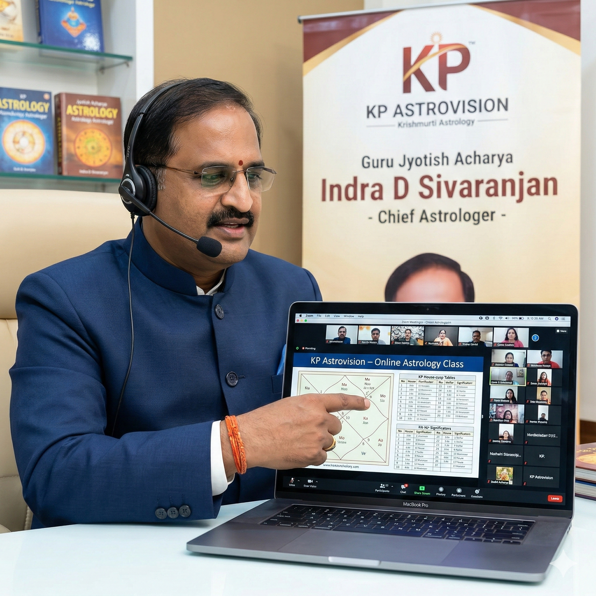 Learn KP Astrology with KP Astro Vision’s training program. Our courses simplify the Krishnamurti Paddhati system, focusing on key areas such as Sub-lords, Ruling Planets, and the DBA Method for accurate predictions.